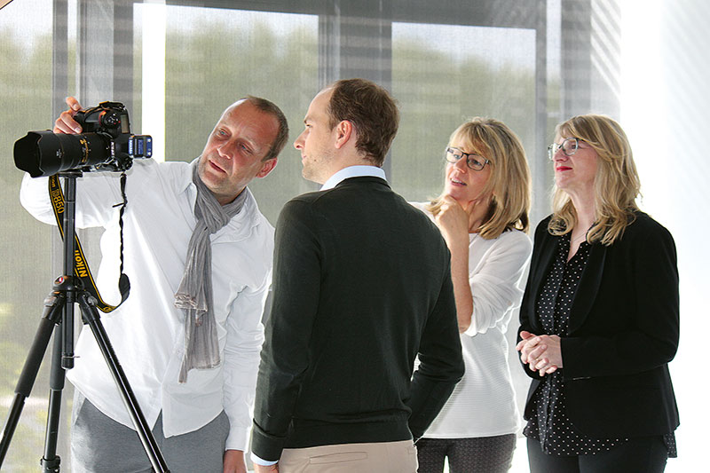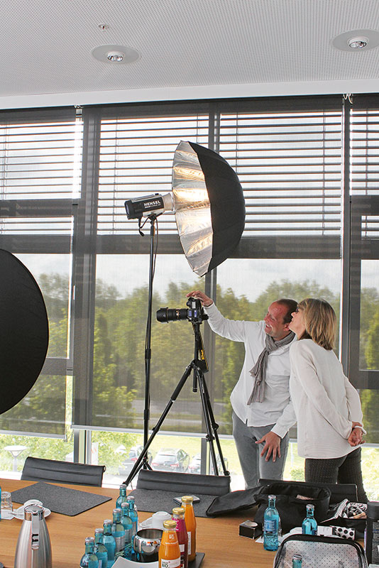 „Danke, entspannen.“ Sagt Fotograf Daniel Möller, als die Bilder im Kasten sind. Raoul Roßmann steht zwar zum ersten Mal für ein Anzeigenmotiv vor einer Kamera. Allerdings wirkt trotz dieser Premiere der Geschäftsführer des Drogeriemarktunternehmens Rossmann auch nicht sonderlich angespannt. Im Gegenteil: Der 33-Jährige, der beim Handelsriesen unter anderem für den Einkauf verantwortlich ist, unterhält sich mit Make-up-Artist Janine Köhler, die ihn auf die Fotos vorbereitet hat, eingehend über ihr Kosmetik-Sortiment. Das ist über die Ecke eines Konferenztisches ausgebreitet: Der enge Terminkalender Roßmanns hat den Umzug vom Fotostudio in die Burgwedeler Unternehmenszentrale nötig gemacht. Dort entstanden die Fotos für die Anzeigenserie zur IHK-Vollversammlungswahl.
