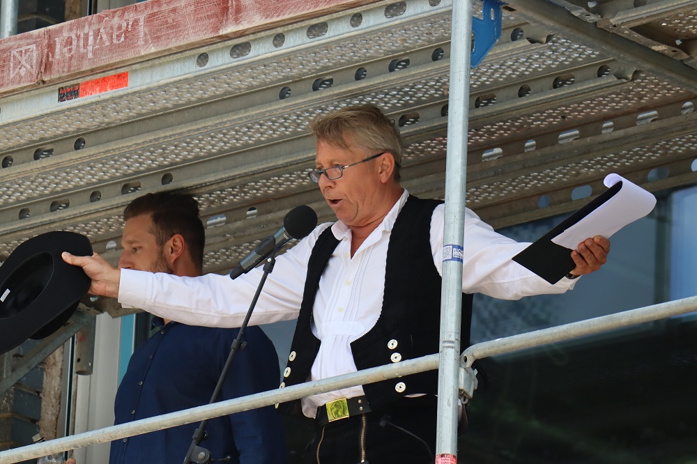 Die Menschen, die’s gebaut haben, gilt der Dank beim Fest: Richtspruch von Jürgen Lutter.