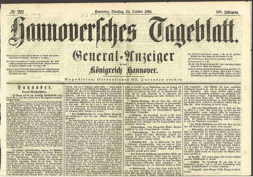 - Ausgabe des Hannoverschen Tageblatts vom 24. Oktober 1865